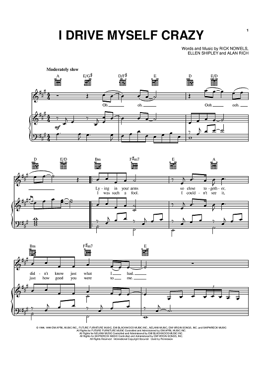 Digital Sheet Music for I Drive Myself Crazy by Rick Nowels, Ellen Shipley, Alan Rich, *Nsync scored for Piano/Vocal/Chords; id:368670
