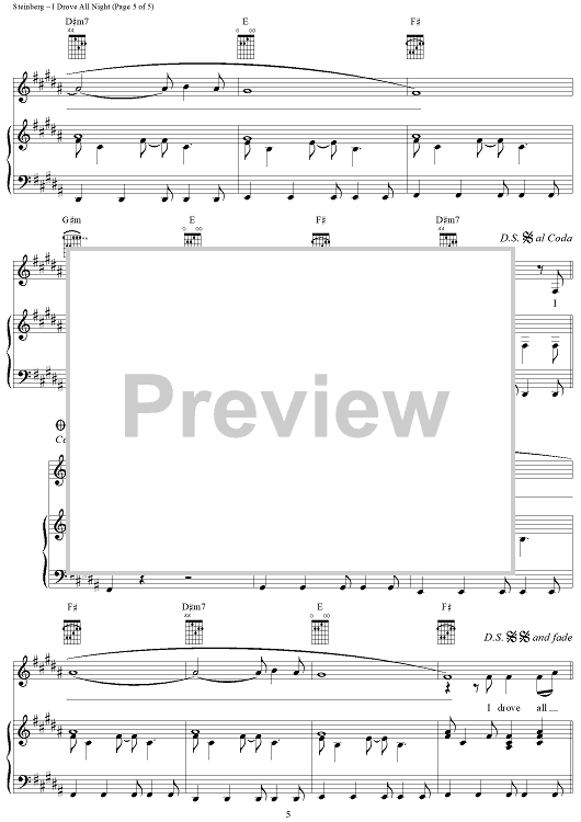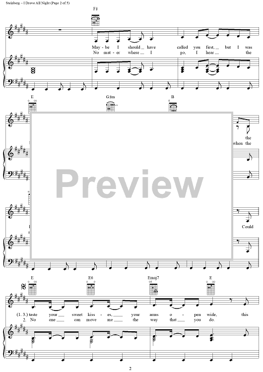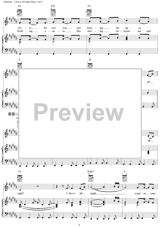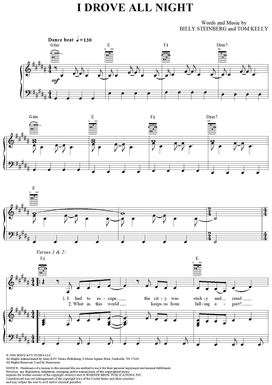 Digital Sheet Music for I Drove All Night by Celine Dion, Billy Steinberg, Tom Kelly, Cyndi Lauper scored for Piano/Vocal/Chords; id:296423