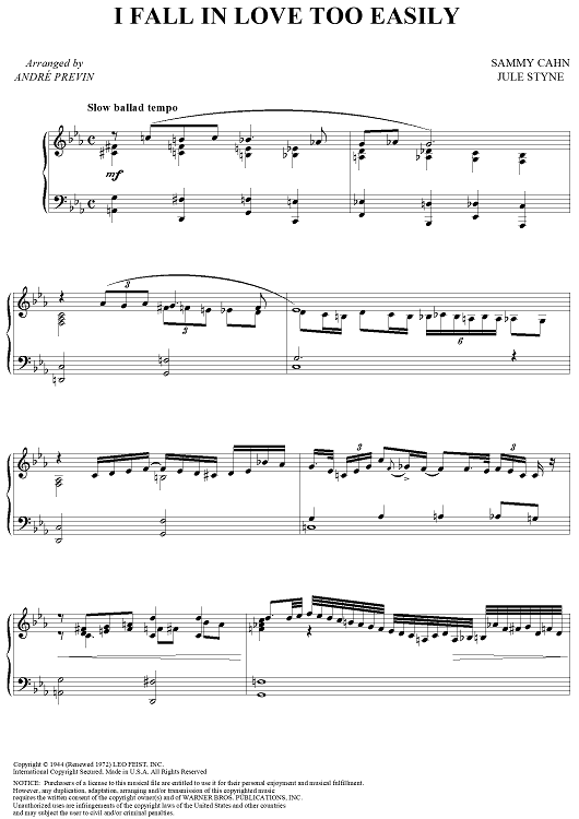 "I Fall In Love Too Easily" Sheet Music by Andre Previn