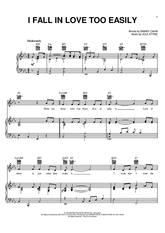 "I Fall In Love Too Easily" Sheet Music by Frank Sinatra
