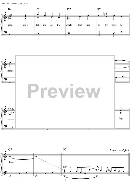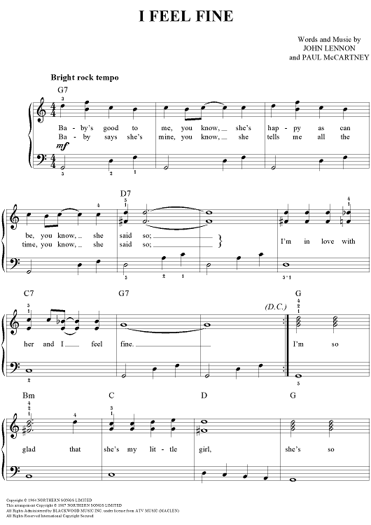 Digital Sheet Music for I Feel Fine by Paul McCartney, The Beatles, John Lennon scored for Easy Piano/Vocal/Chords; id:449558