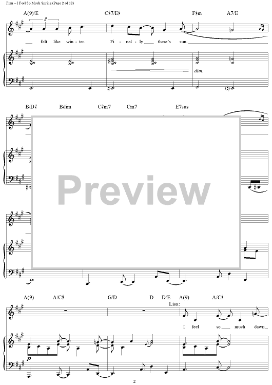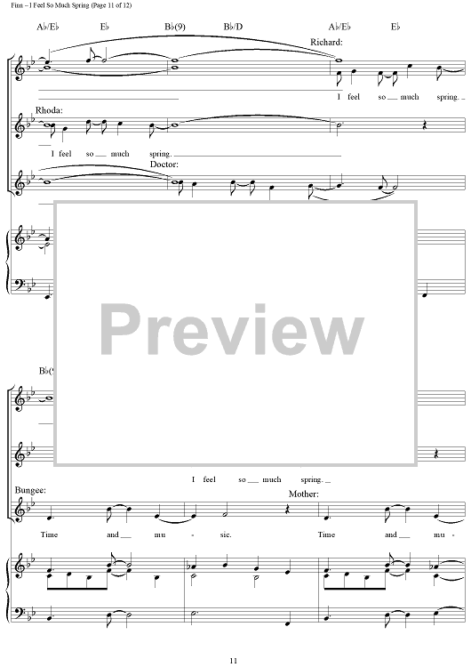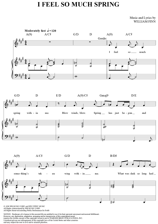 Digital Sheet Music for I Feel So Much Spring by William Finn scored for Piano/Vocal/Chords; id:269897