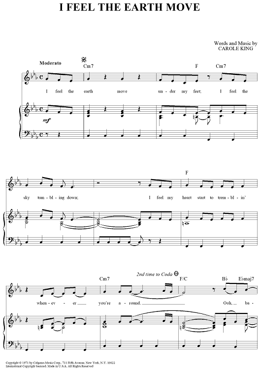 Digital Sheet Music for I Feel the Earth Move by Carole King scored for Piano/Vocal/Chords; id:362958