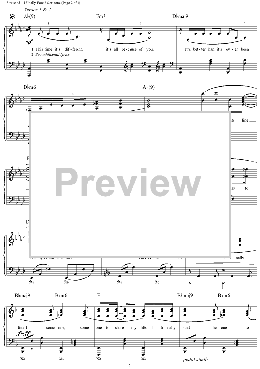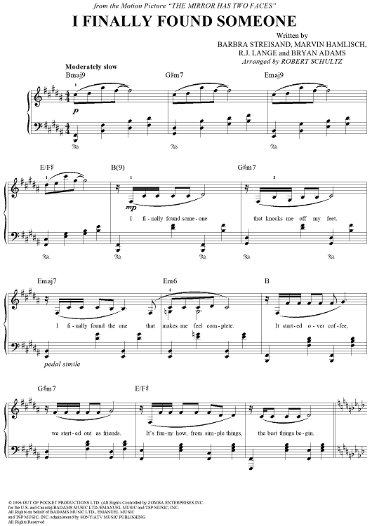 "I Finally Found Someone" Sheet Music by Marvin Hamlisch