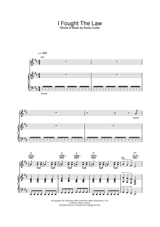 "I Fought The Law" Sheet Music by The Clash