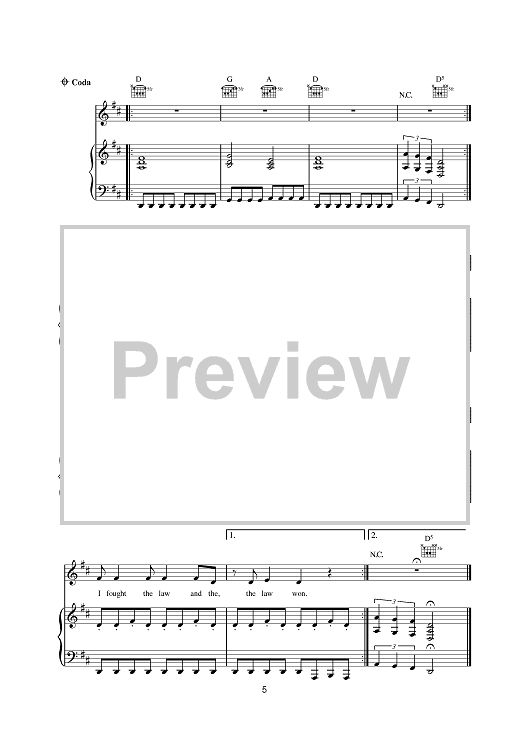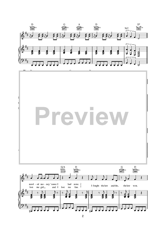 Digital Sheet Music for I Fought The Law by The Clash, Sonny Curtis, Colin Farrell, Bobby Four Fuller scored for Piano/Vocal/Chords; id:380944