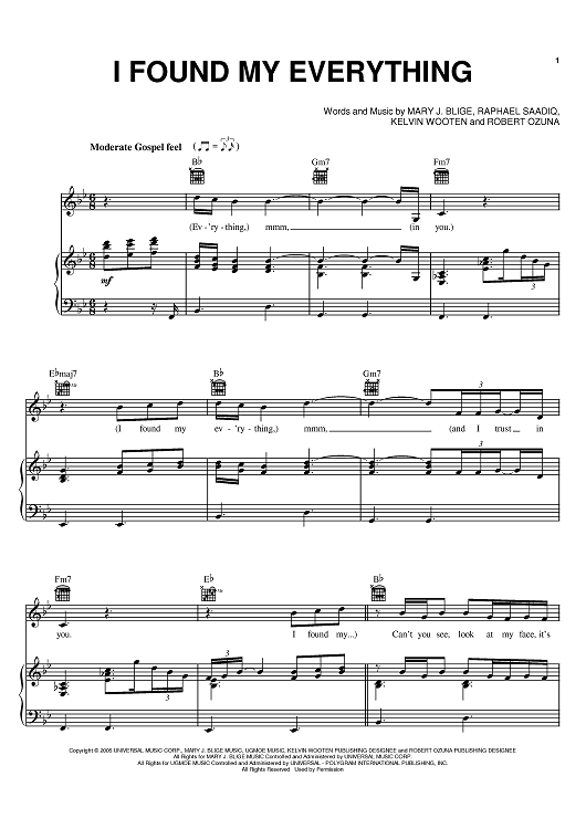 Digital Sheet Music for I Found My Everything by Mary J. Blige, Robert Ozuna, Raphael Saadiq, Kelvin Wooten scored for Piano/Vocal/Chords; id:395051
