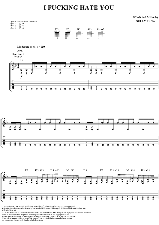 "I Fucking Hate You" Sheet Music by Godsmack