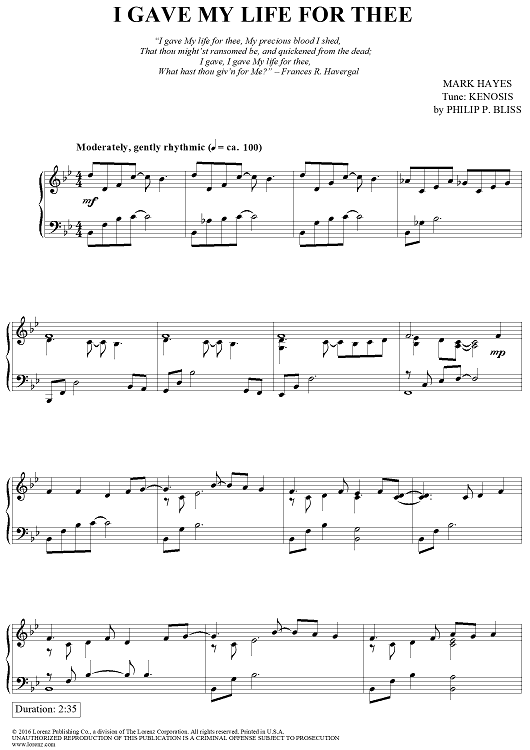 Digital Sheet Music for I Gave My Life For Thee by Philip P. Bliss, Mark Hayes scored for Piano Solo; id:462626