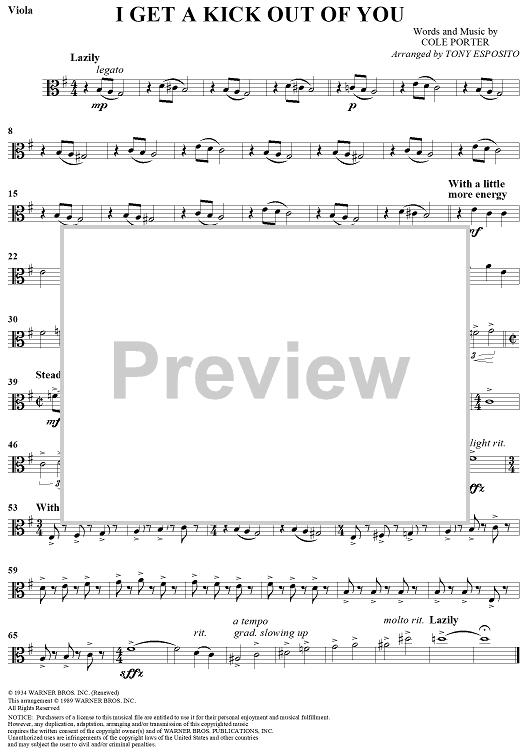 "I Get a Kick Out of You - Viola" Sheet Music by Cole Porter
