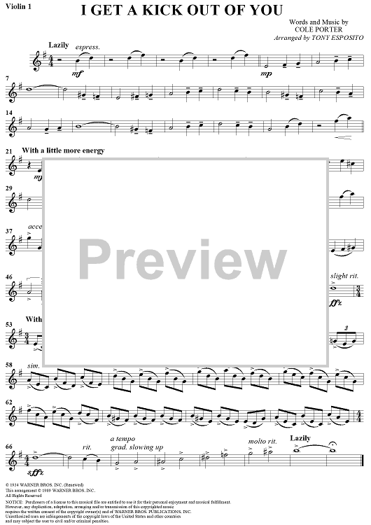 "I Get a Kick Out of You - Violin 1" Sheet Music by Cole Porter