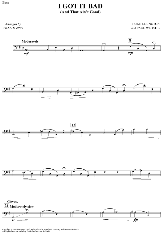 "I Got It Bad (And That Ain't Good) - Bass" Sheet Music by Duke Ellington