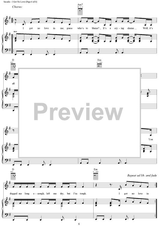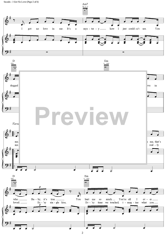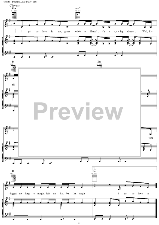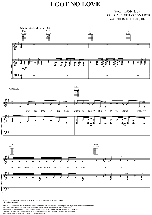 Digital Sheet Music for I Got No Love by Gloria Estefan, Jon Secada, Emilio Estefan Jr., Sebastian Krys scored for Piano/Vocal/Chords; id:283434