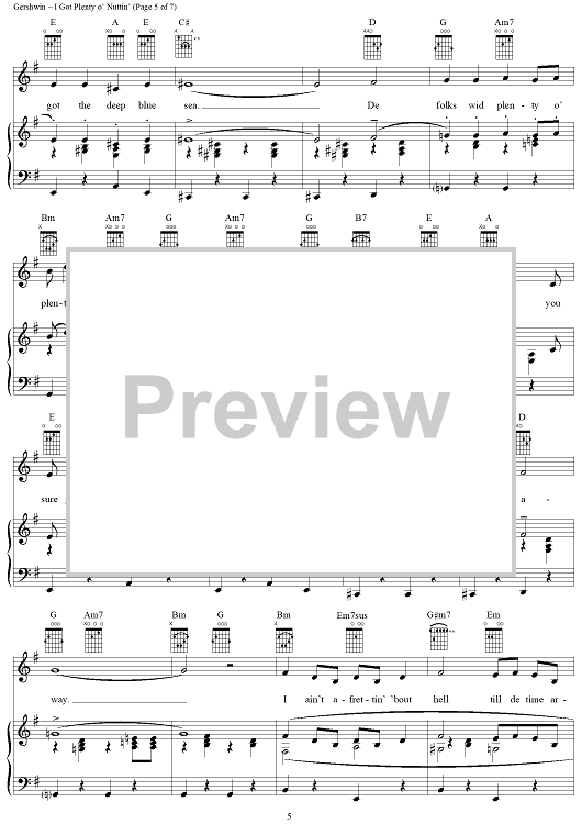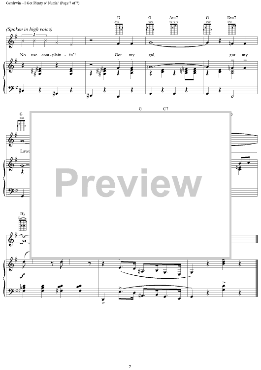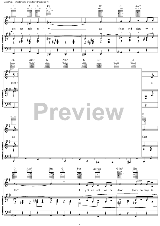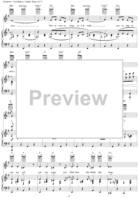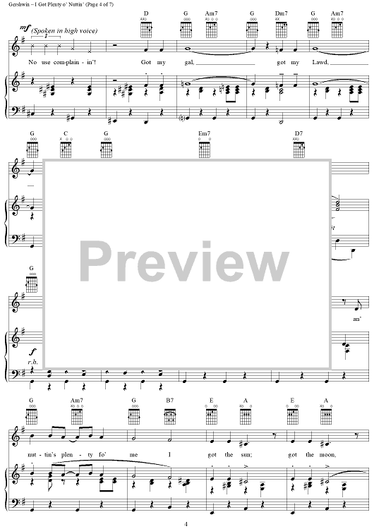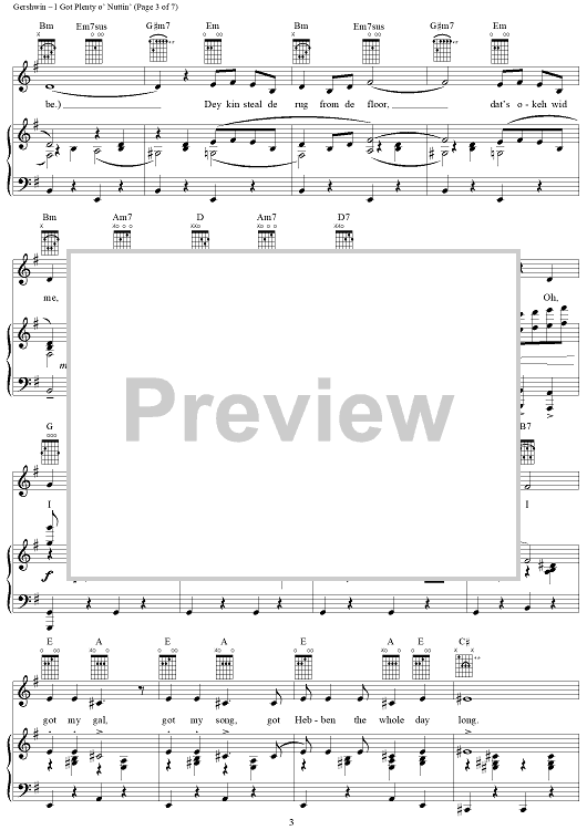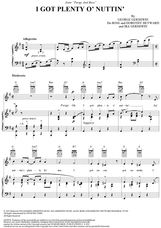 Digital Sheet Music for I Got Plenty o' Nuttin' by George Gershwin, Ira Gershwin, Dubose & Dorothy Heyward scored for Piano/Vocal/Chords; id:109978