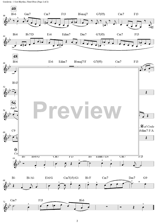 Digital Sheet Music for I Got Rhythm by George Gershwin, Ira Gershwin, Carl Strommen scored for Flute or Oboe; id:308553