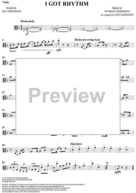 "I Got Rhythm - Viola" Sheet Music by George Gershwin