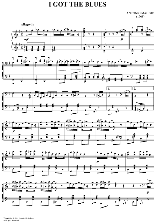 "I Got the Blues" Sheet Music by A. Maggio