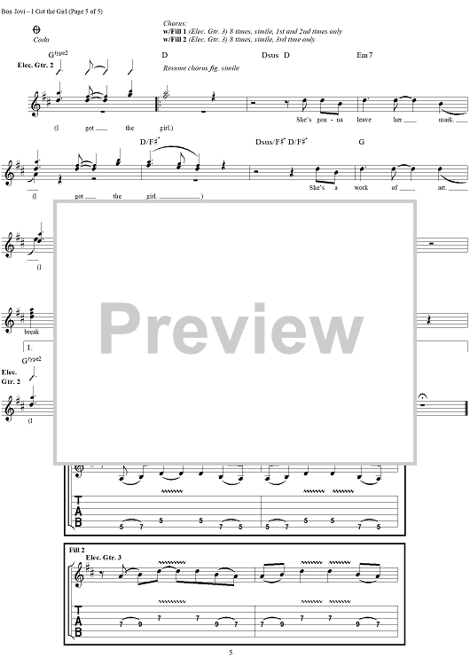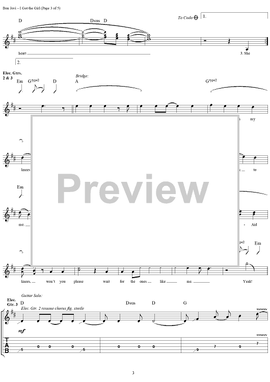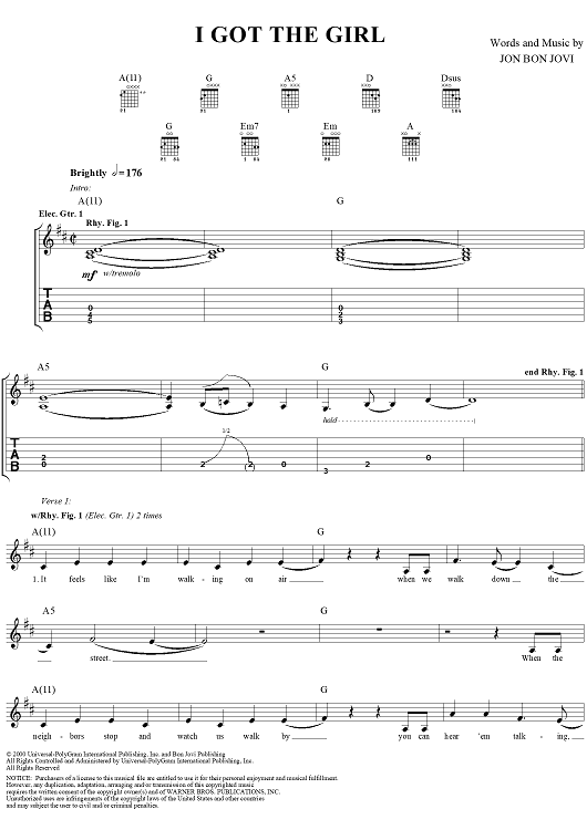 "I Got the Girl" Sheet Music by Bon Jovi