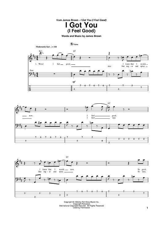 Digital Sheet Music for I Got You (I Feel Good) by James Brown scored for Bass Tab; id:384107