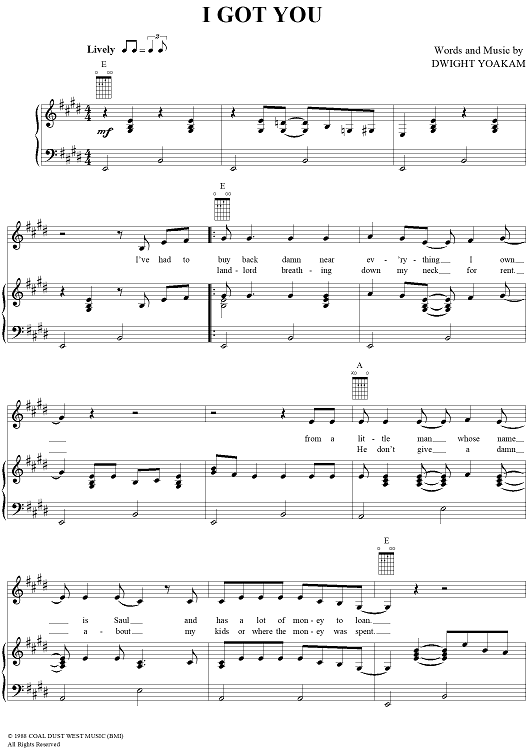 Digital Sheet Music for I Got You by Dwight Yoakam scored for Piano/Vocal/Chords; id:263078