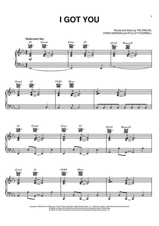 Digital Sheet Music for I Got You by Craig Morgan, Philip O'Donnell, Tim Owens scored for Piano/Vocal/Chords; id:390398