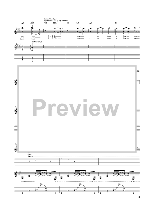 Digital Sheet Music for I Hate Everything About You by Golden Brown, Three Days Grace scored for Guitar Tab; id:373629