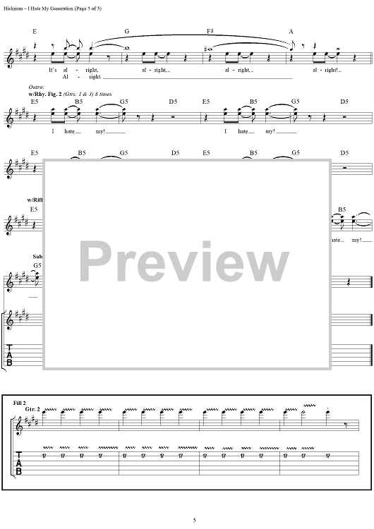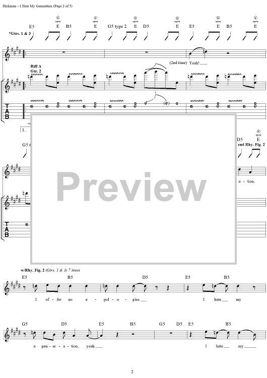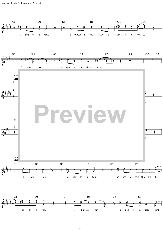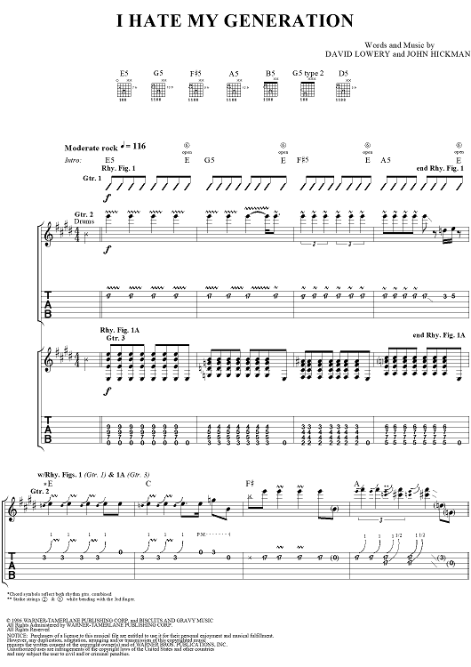 Digital Sheet Music for I Hate My Generation by John Hickman, David Lowery, Cracker scored for Guitar Tab/Vocal; id:112731