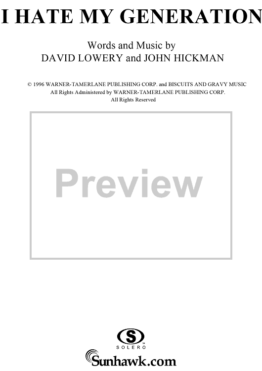 "I Hate My Generation" Sheet Music by Cracker