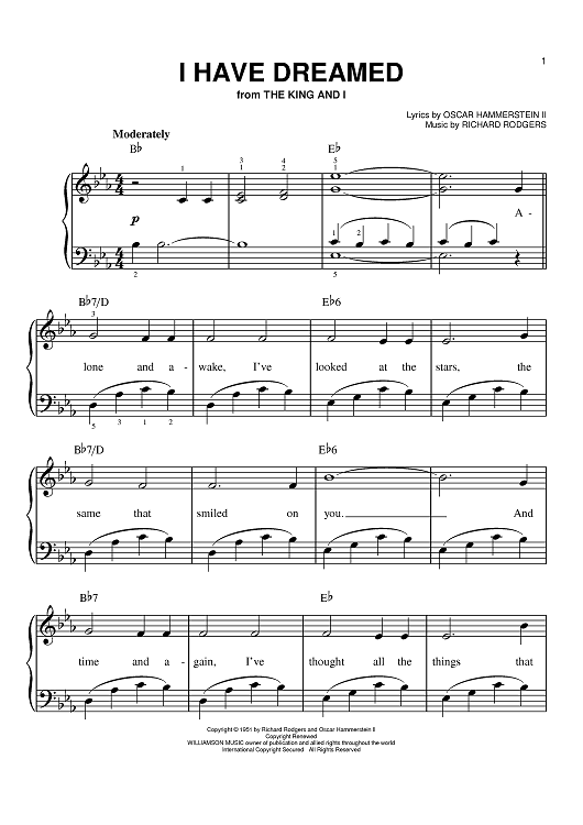 Digital Sheet Music for I Have Dreamed by Richard Rodgers, Oscar Hammerstein II scored for Easy Piano; id:390462