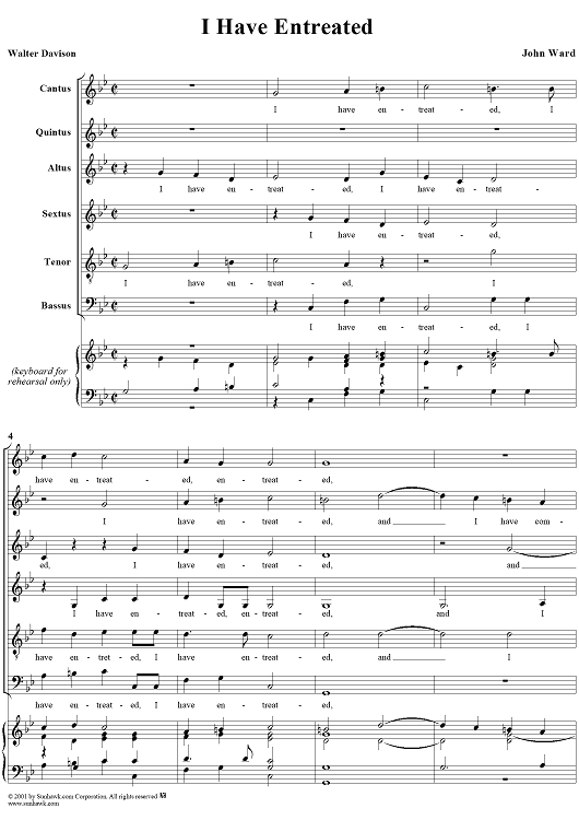 Digital Sheet Music for I Have Entreated by John Ward, Walter Davison scored for Mixed Chorus; id:249588