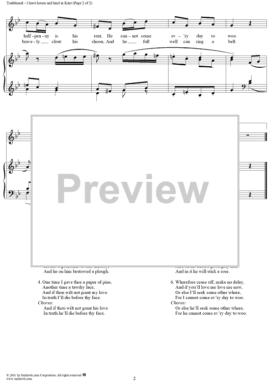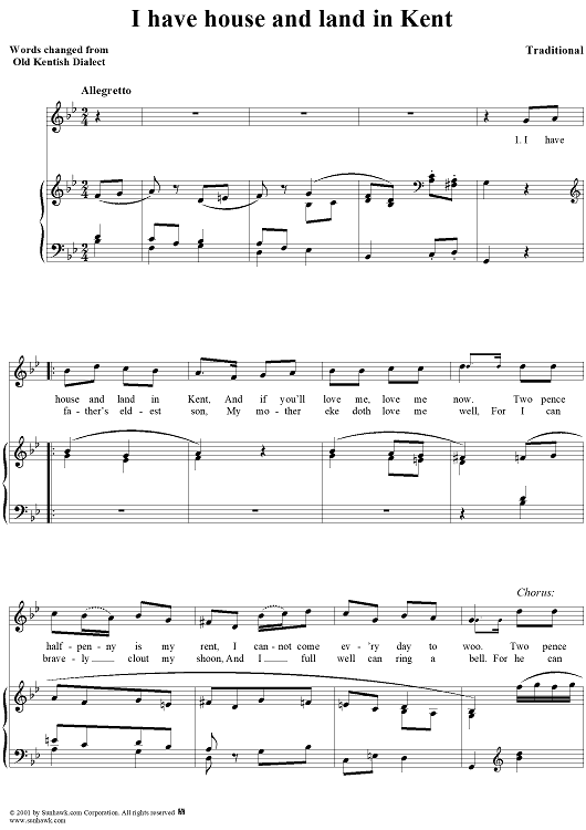 Digital Sheet Music for I have house and land in Kent by Traditional scored for Piano/Vocal; id:258928