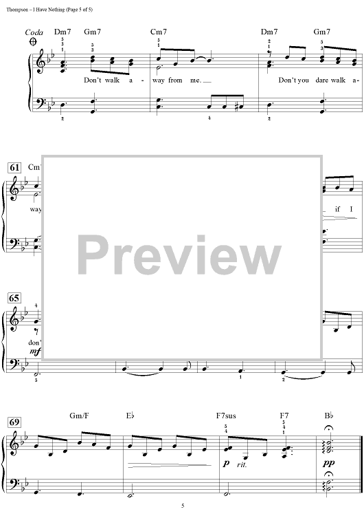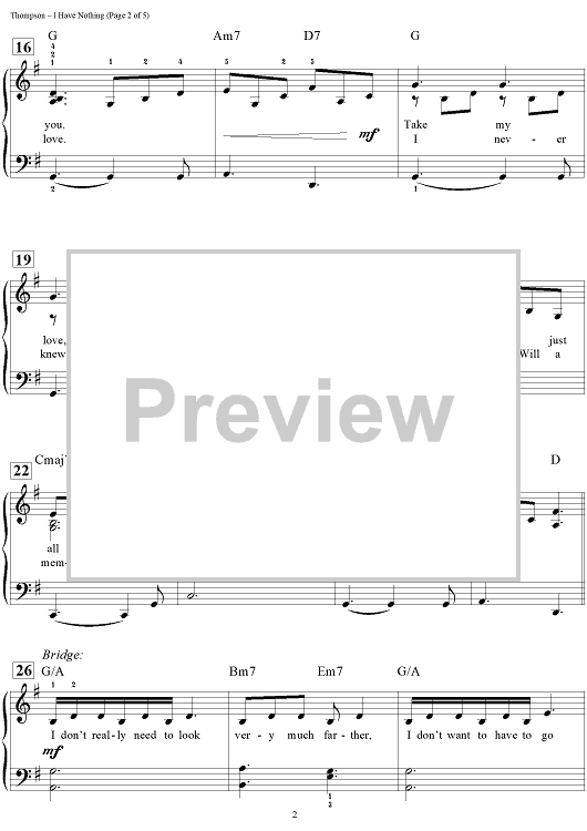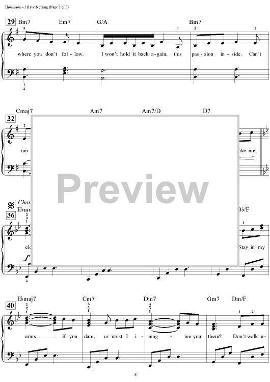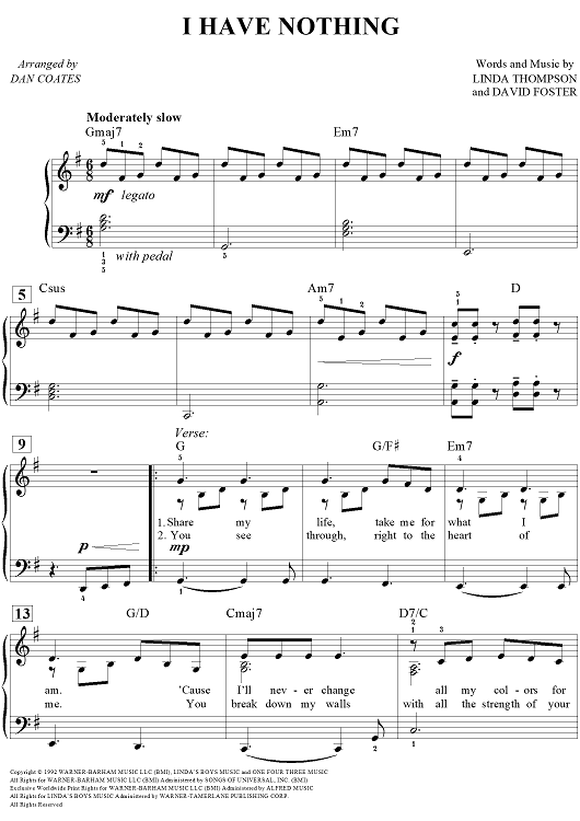 Digital Sheet Music for I Have Nothing by Dan Coates, Linda Thompson, David Foster, Whitney Houston scored for Easy Piano/Vocal/Chords; id:444651