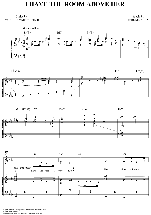 Digital Sheet Music for I Have The Room Above Her by Jerome Kern, Oscar Hammerstein II scored for Piano/Vocal/Chords; id:310142