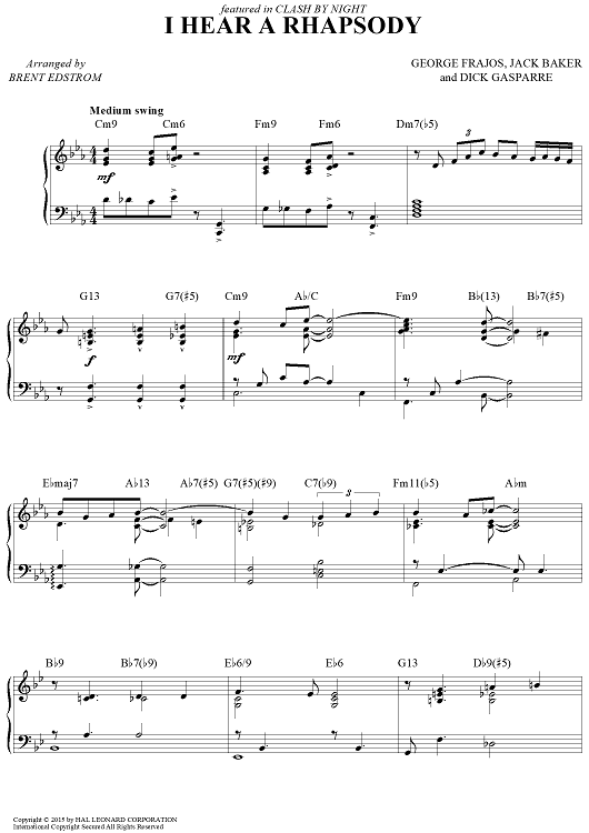 Digital Sheet Music for I Hear A Rhapsody by Jack Baker, George Frajos, Dick Gasparre, Brent Edstrom scored for Piano Solo; id:459940