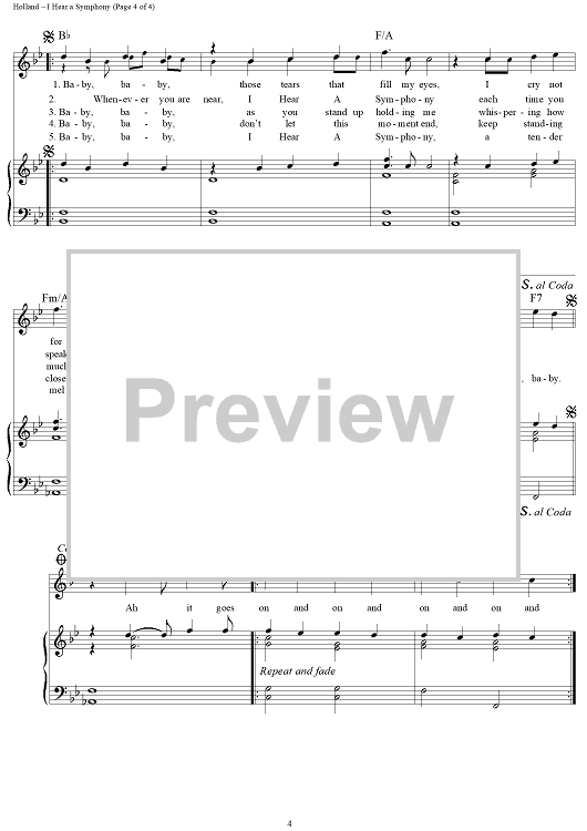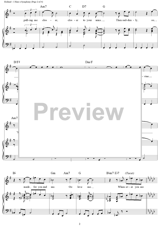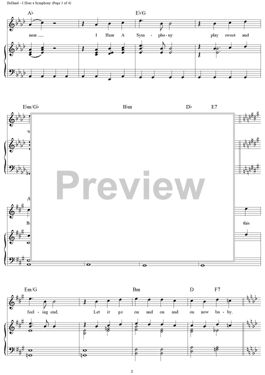 Digital Sheet Music for I Hear a Symphony by Lamont Dozier, Brian Holland, Eddie Holland, The Supremes scored for Piano/Vocal/Chords; id:124067