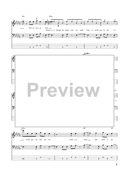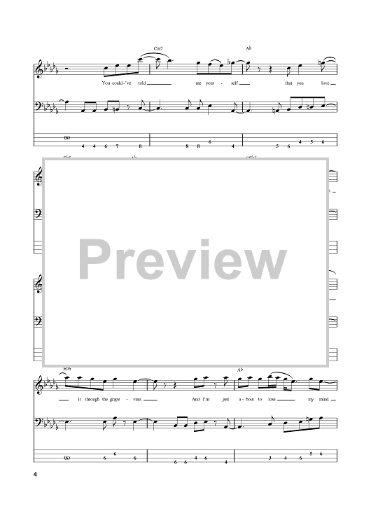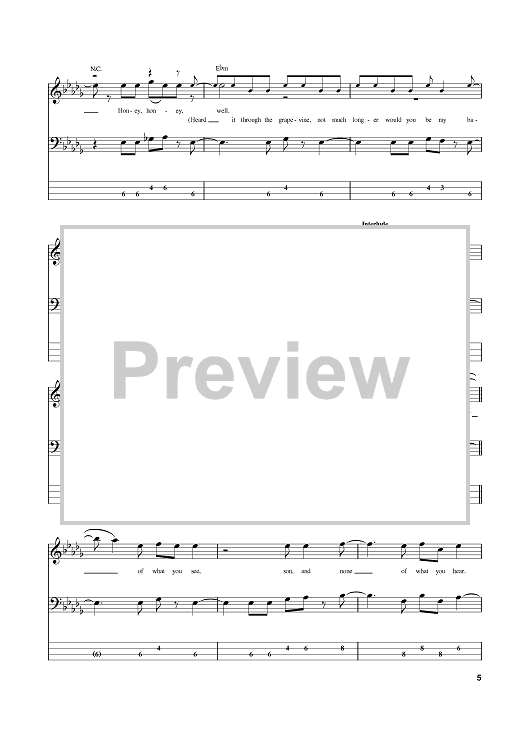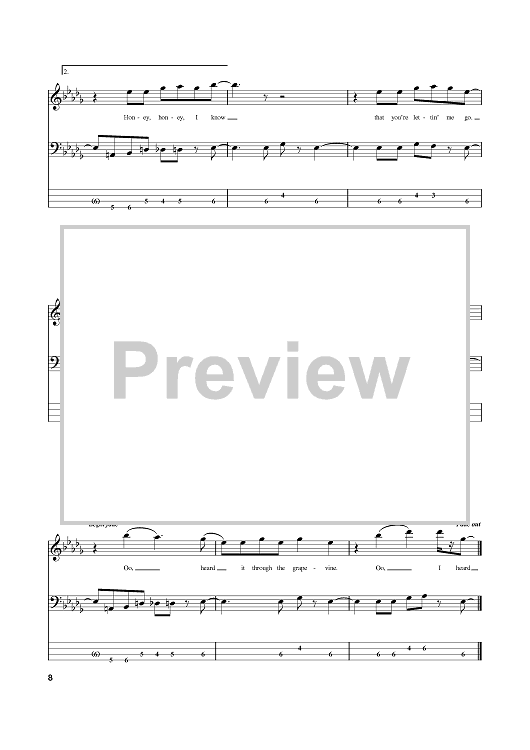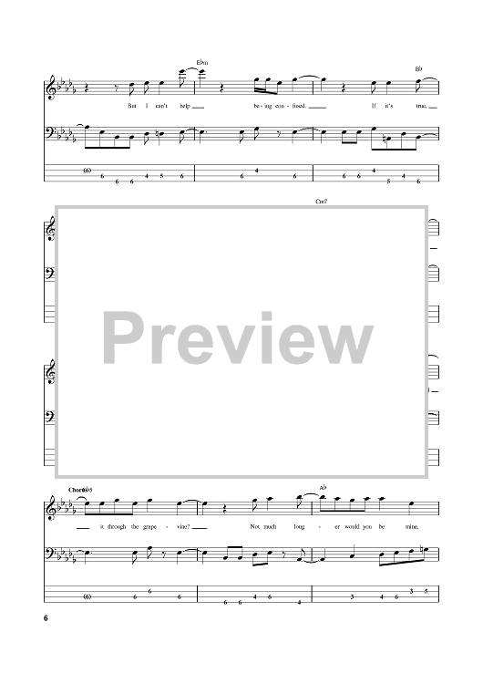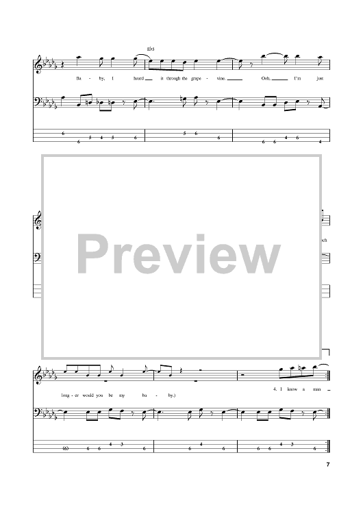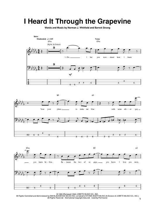 Digital Sheet Music for I Heard It Through The Grapevine by Marvin Gaye, Gladys Knight, Norman Jesse Whitfield, Barrett Strong, Creedence Clearwater Revival, The Pips, The Miracles scored for Bass Tab; id:381463