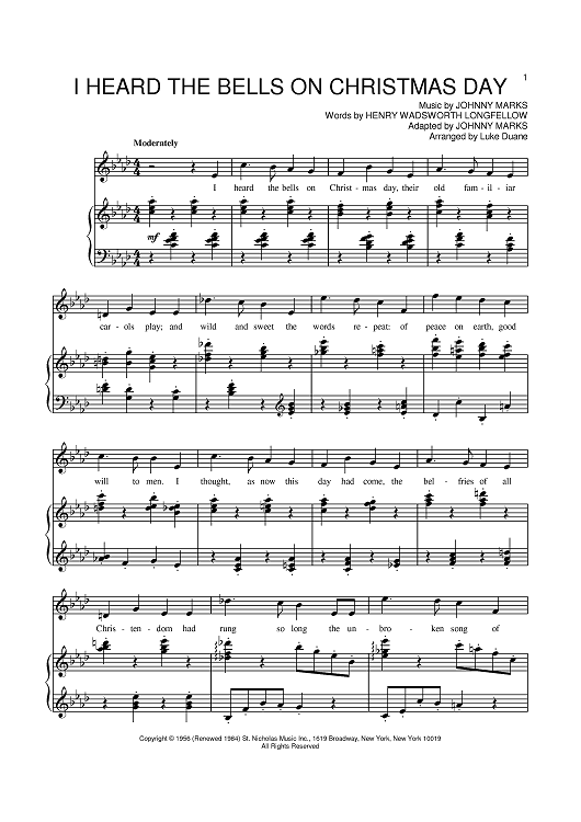 Digital Sheet Music for I Heard The Bells On Christmas Day by Frank Sinatra, Johnny Cash, Kate Smith, Johnny Marks, Henry Wadsworth Longfellow scored for Piano/Vocal/Chords; id:372613