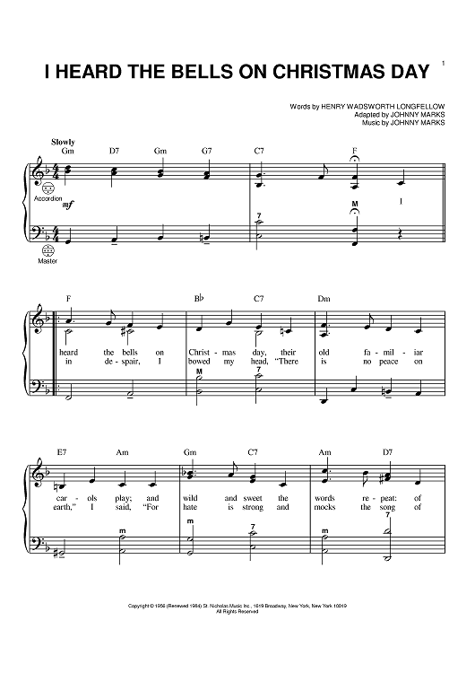 Digital Sheet Music for I Heard The Bells On Christmas Day by Johnny Marks, Henry Wadsworth Longfellow scored for Accordion; id:391325