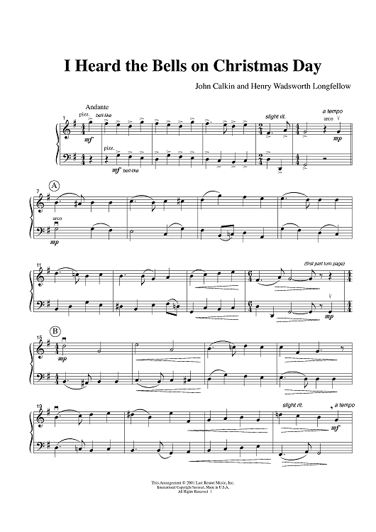 "I Heard the Bells on Christmas Day" Sheet Music by John Baptiste Calkin