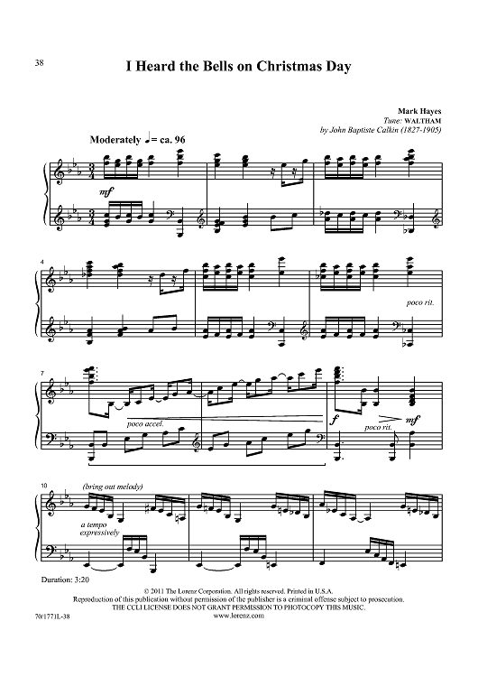 Digital Sheet Music for I Heard the Bells on Christmas Day by Mark Hayes, John Baptiste Calkin scored for Piano Solo; id:433404