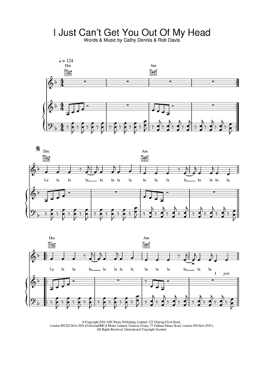 Digital Sheet Music for I Just Can't Get You Out Of My Head by Kylie Minogue scored for Piano/Vocal/Chords; id:377442