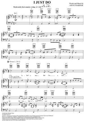 Digital Sheet Music for I Just Do by Steve Wariner scored for Piano/Vocal/Chords; id:286463