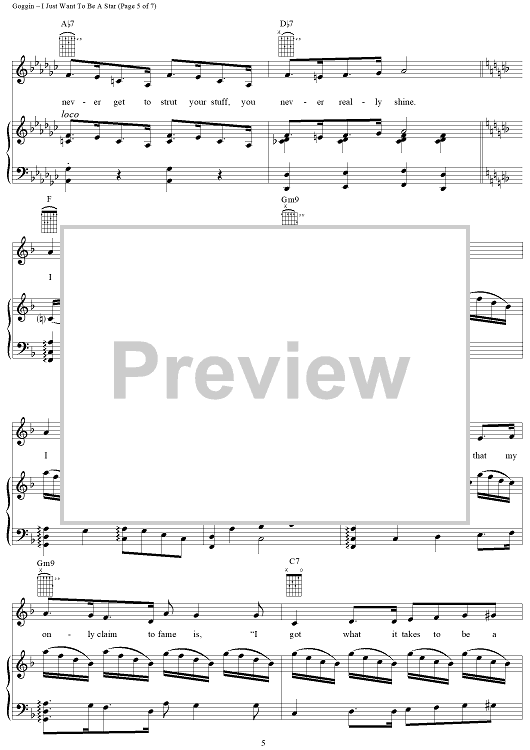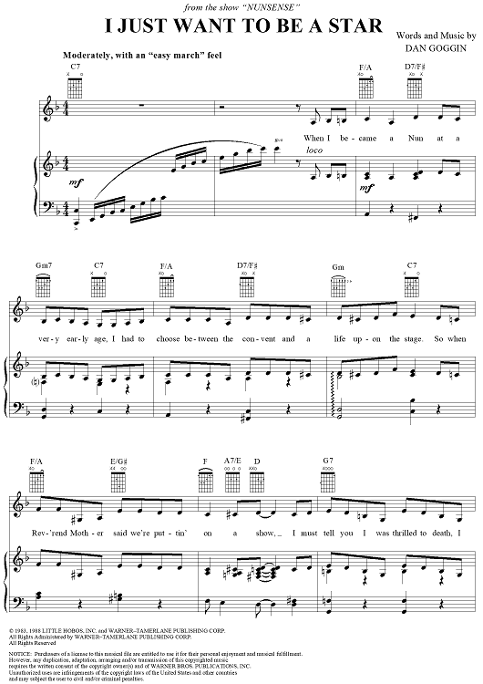 Digital Sheet Music for I Just Want To Be A Star by Dan Goggin scored for Piano/Vocal/Chords; id:267970
