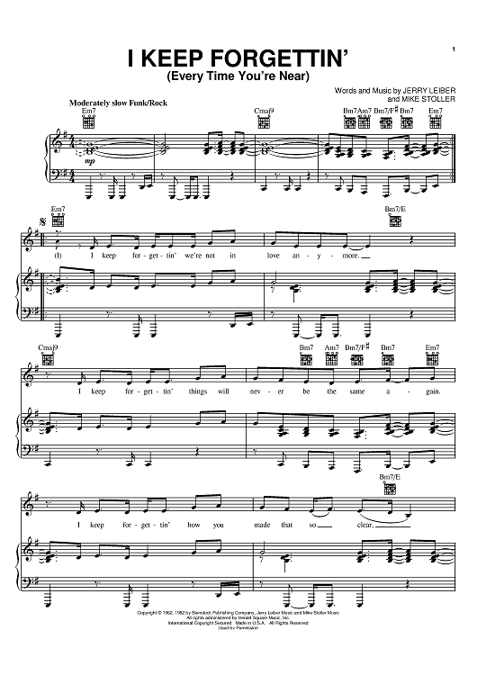 Digital Sheet Music for I Keep Forgettin' (Every Time You're Near) by Michael McDonald, Jerry Leiber, Mike Stoller scored for Piano/Vocal/Chords; id:396169