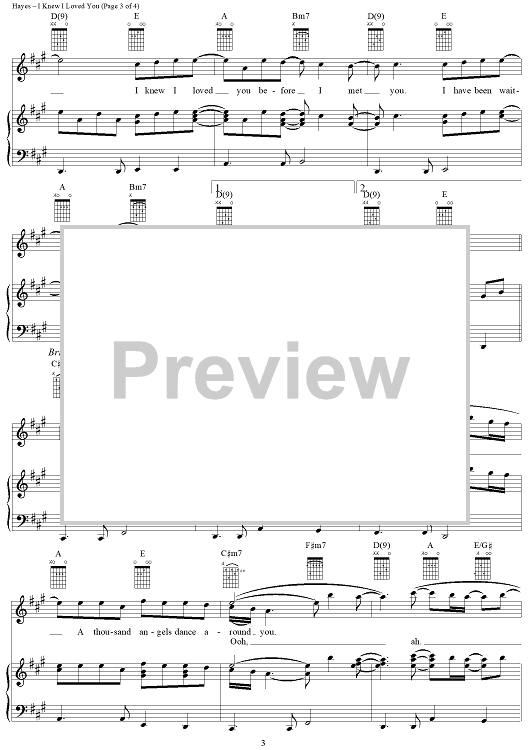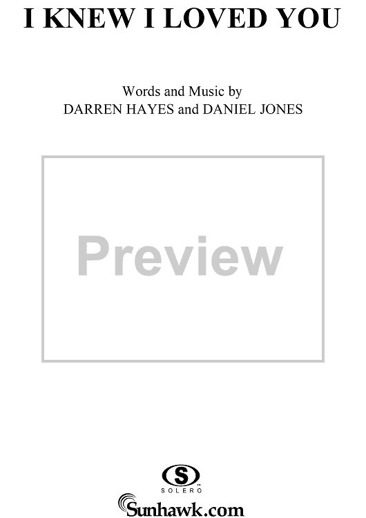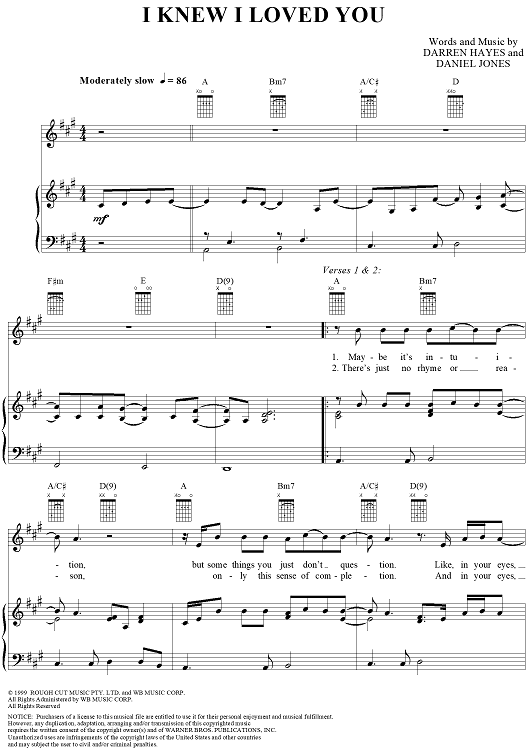 Digital Sheet Music for I Knew I Loved You by Darren Hayes, Daniel Jones, Savage Garden scored for Piano/Vocal/Chords; id:124328