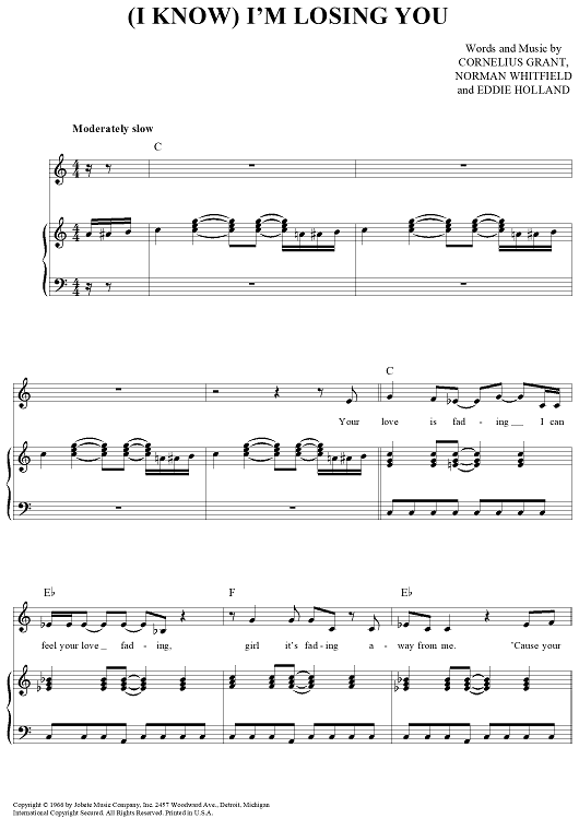 Digital Sheet Music for (I Know) I'm Losing You by Norman Jesse Whitfield, Cornelius Grant, Eddie Holland, The Temptations scored for Piano/Vocal/Chords; id:364038