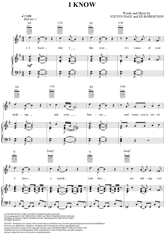 Digital Sheet Music for I Know by Steven Page, Ed Robertson, Barenaked Ladies scored for Piano/Vocal/Chords; id:216708