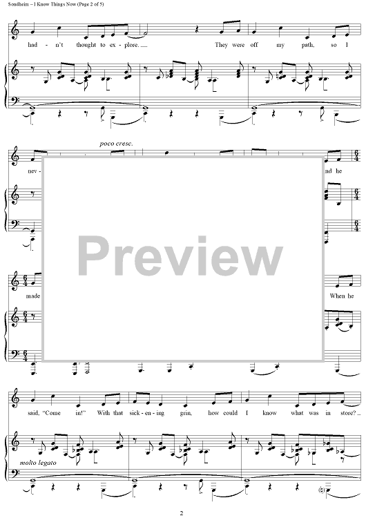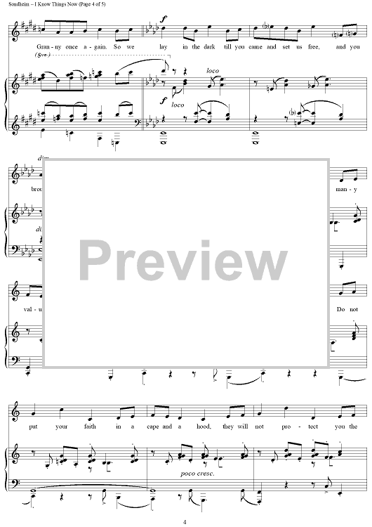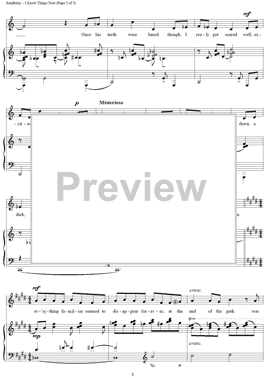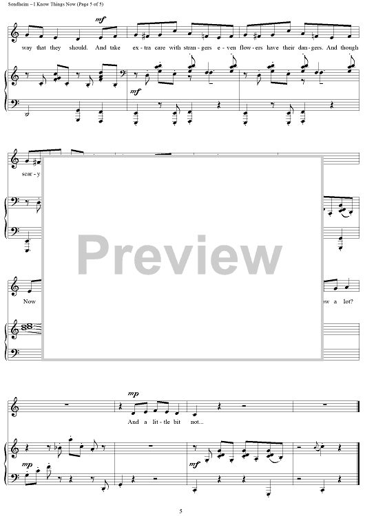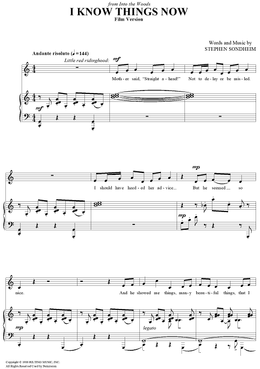 Digital Sheet Music for I Know Things Now (Film Version) by Stephen Sondheim scored for Piano/Vocal; id:446773