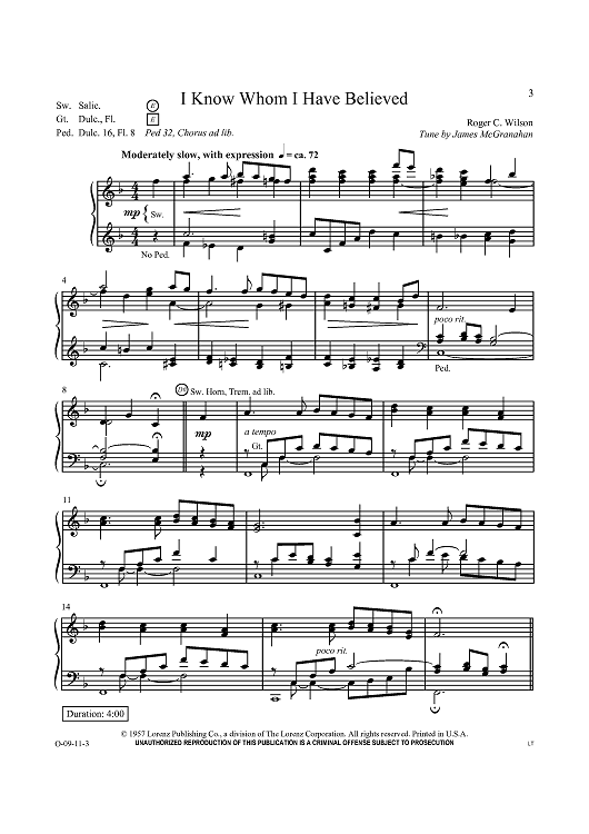 Digital Sheet Music for I Know Whom I Have Believed by , James McGranahan, Roger C. Wilson scored for Organ Solo; id:434345