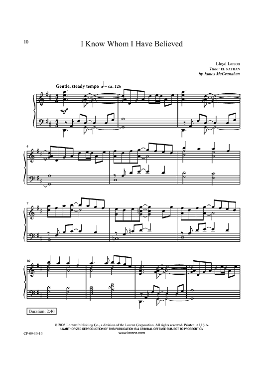 Digital Sheet Music for I Know Whom I Have Believed by James McGranahan, Lloyd Larson scored for Piano Solo; id:434409